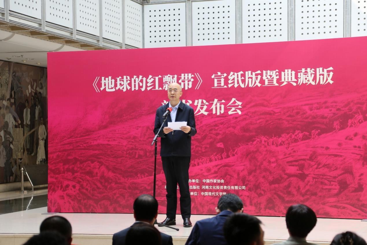 日前,中国作家协会主办,作家出版社、河南省文化产业投资有限责任公司承办的《地球的红飘带》宣纸典藏版和宣纸版新书发布会在中国现代文学馆举行。