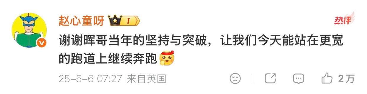 随后,赵心童留言回复:“谢谢晖哥当年的坚持与突破,让我们今天能站在更宽的跑道上继续奔跑。”
